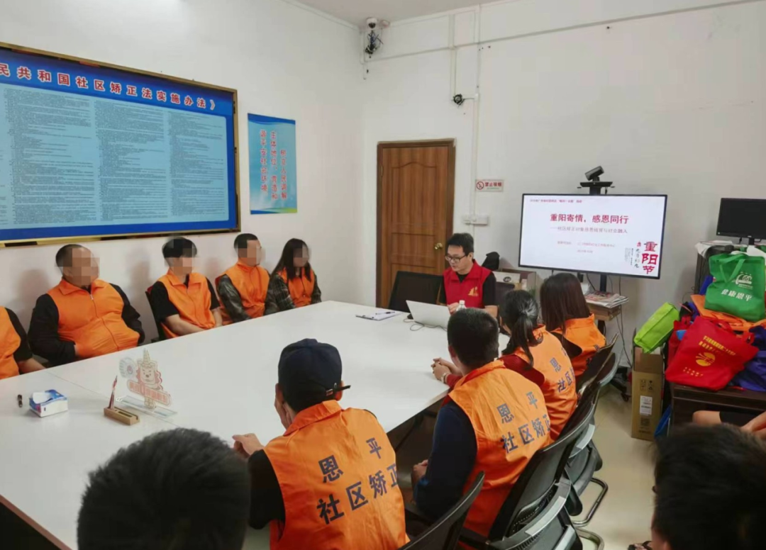 紧扣重阳节“敬老感恩”内核,向社区矫正对象深入阐释传统孝道在当代社会的价值。同时,工作人员通过分享社区矫正对象在家庭支持与社会帮扶下成功融入社会的正向案例,激发其内生动力,引导他们从“被动接受管理”转变为“主动感恩、积极回馈”,从而更清晰地认识并履行自己在家庭与社会中的责任。